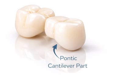 Maryland Bridge: Uses metal or porcelain wings bonded to nearby teeth – less invasive