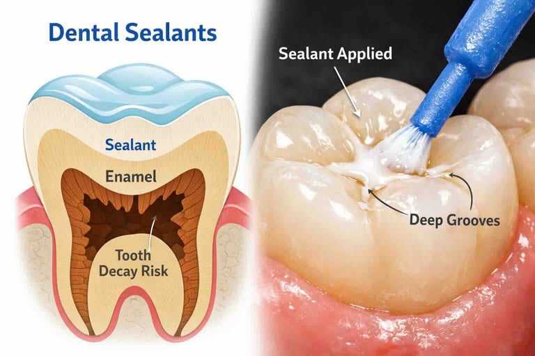 A thin, protective coating applied to the chewing surfaces of back teeth to help prevent cavities — especially in areas that are hard to clean.